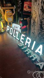 Insegna Luminosa Anni 50 POLLERIA vintage Neon in vetro.