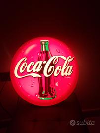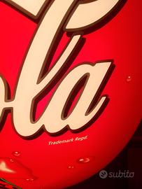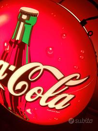 Bellissima insegna luminosa bifacciale coca-cola in buone condizioni funzionante colori perfetti,presenta una lieve lesione come si vede dalle foto ma che non ne efficia la bellezza.