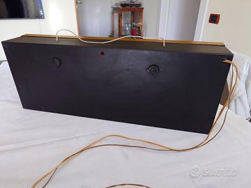 Insegna luminosa da interno caffè Mokarabia con orologio, perfettamente funzionante, in ottime condizioni di conservazione, come si evince dalle foto. Ideale da utilizzare per creare un angolo bar vintage. La struttura è in metallo, le dimensioni sono: larghezza cm 62, altezza cm 11, profondità cm 24.
