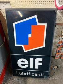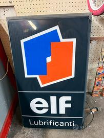 Insegna d’epoca luminosa con logo ELF e scritta Lubrificanti.