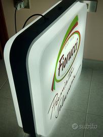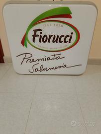 Bellissima insegna luminosa bifacciale dell'iconica azienda gastronomica Fiorucci in ottime condizioni e funzionante ottimo complemento d'arredo per tavernette, paninoteche, locali gastronomici in genere o semplicemente amanti del genere pubblicitario.misure 65x58 circa.