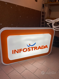 Insegna luminosa Infostrada. Si illumina collegando la spina alla corrente elettrica. Può anche diventare un’originale lampada da tavolo. Misure 40x60 cm circa. Non effettuo spedizioni, ritiro presso il venditore a Binasco (Mi)