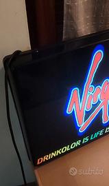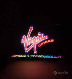 Rara insegna luminosa vintage originale Virgin Drinks, modernariato per collezionisti, ottimo arredamento di locali, pub stile retro pop Dimensioni 62x40x12 cm No spedizione