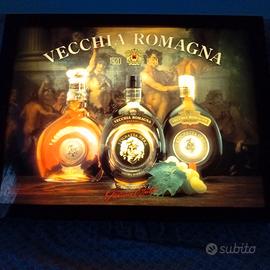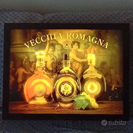 Insegna Luminosa Vecchia RomagnaInsegna luminosa a tema Vecchia Romagna. - Design con bottiglie del liquore. - Cornice robusta color bordeaux.