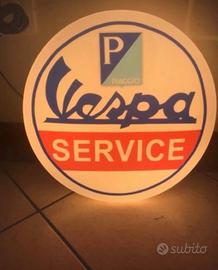 Insegna luminosa vespa service Diametro 25 cm Con interruttore Ottima per arredamento vintage O officina