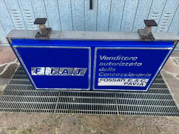 Insegna luminosa Fiat bifacciale scritte con segni del tempo misure 105 × 55 × 18