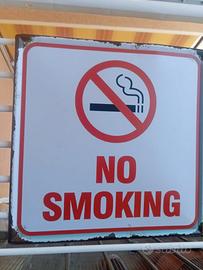 Insegna di vietato fumare effetto vintage, misure 30x30, in buone condizioni generali.