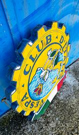 vendo fantastica insegna su legno antico raffigurante logo vespa club Italia piaggio misura 70cm circa per altre informazioni contattatemi 333 69 48 483