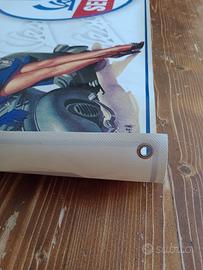 striscione gommato spesso con quattro anelli per posizionarlo dove meglio visibile . usato in fiera da ex negozio motocicli . colori vividi . ottimo per collezionisti privati ,officine ecc... di medie dimensioni, misura 114 x60