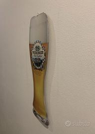 Rara insegna pubblicitaria Birra Wieninger. Fine anni’90. Materiale lamierino a rilievo. Misura altezza 65cm. Usata e vissuta ma in ottime condizioni estetiche. Articolo decorativo per amanti e collezionisti del genere.