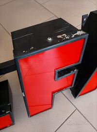 insegna pubblicitaria originale in metallo scritta ALFA frontalmente le lettere sono in plexi rosso, possibilità di essere resa luminosa misure 85x24x13 cm con supporti per essere fissata alla parete