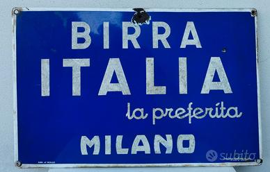 Vendo autentica e affascinante insegna cm 48x31 in metallo smaltato della storica "Birra Italia- la preferita" Milano Questo pezzo di design industriale, prodotto a Milano dalle "Smalterie Lombarde" nota ditta milanese specializzata nella lavorazione dello smalto su metallo di alta qualità tra gli anni '20 e gli anni '50 Stato di conservazione: L'insegna presenta i segni del tempo che ne testimoniano l'autenticità e il vissuto(come da foto) caratteristiche che ne aumentano il valore collezionistico e il valore decorativo. Per i collezionisti di modernariato, la presenza del nome delle Smalterie Lombarde conferma che si tratta di un oggetto d' epoca autentico e di fattura italiana di qualità, un marchio di fabbrica d'epoca. Disponibile per spedizione tracciata o consegna a mano. Astenersi perditempo.
