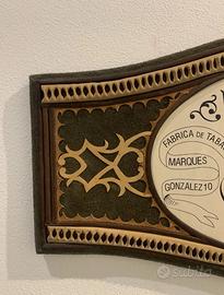 Rara insegna pubblicitaria sigari Belinda. Vintage anni’80/90. Made in Habana, Cuba. Materiale legno, pelle e plastica. Misura 60x30cm. Usato e vissuto ma in più che buone condizioni estetiche. Articolo di rara reperibilità per seri amanti e collezionisti del genere.