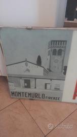 Vecchia insegna di vetro pubblicitaria dipinta a mano proveniente da una drogheria Pratese. L'insegna é degli anni 50 raffigurante la rocca di Montemurlo.