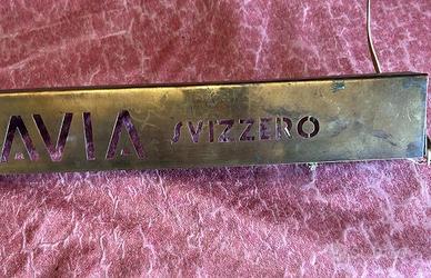 Rarissima insegna pubblicitaria vintage orologi svizzeri Avia. In ottone. Misure L 50 H 6 P 4,5. Impianto elettrico da ripristinare.