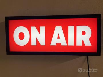 Insegna retroilluminata on-air dimensioni 52 cm x 22 cm x 7 cm. Adatta per arredo moderno/collezione. #radio #onair #studio #insegna
