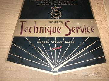 Targa pubblicitaria TECNICA SERVIZIO orologeria, movimento Brocot con ancoraggio Vintage. In alluminio. Stato nuovo, Interessante per collezionista di orologeria. Dimensioni: 20.5 cm x 20.5 cm.