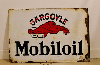 Insegna smaltata bifacciale mobiloil gargoyle