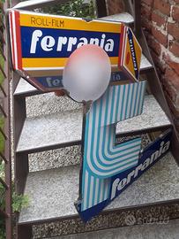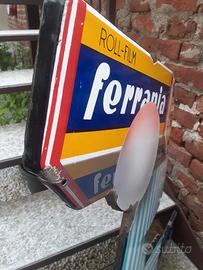 Insegna smaltata Ferrania .Misura circa 90 cm in altezza.