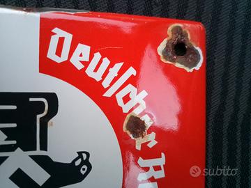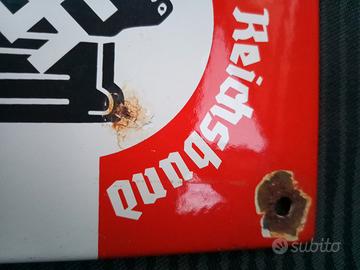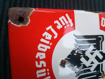 Insegna / targa smaltata WWII del Nationalsozialistischer Reichsbund für Leibesübungen (NSRL) la Lega Nazionalsocialista del Terzo Reich per lo Sport e l' Educazione Fisica che tra l'altro presiedeva il Comitato Olimpico Nazionale Tedesco .