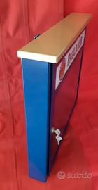 Vendo n. 1 insegna tabella bacheca vetrina pub birra Paulaner, luminosa con due lampadine 2 da 25 watt, insegna mai usata mai usata come nuova, con chiave, funzionante, misura altezza 47 cm, larghezza 52 cm, profondità sopra il bordo dorato 9 cm, sotto colore blu 6,5 cm, parte in plexiglas davanti 28 x 43 cm, telaio fatto in ferro, n. 8 calamite per appendere listino, cavo lungo 140 cm, 4 fori dietro per appendere. Peso 4,5 kg. Spese di spedizione 14 euro.