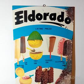 Insegna gelati Eldorado anni 60, abbonamento al bollo, buone condizioni con segni del tempo sul lato destro.