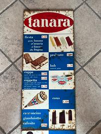 Vendo Insegna tabella gelati Tanara in buone condizioni anni 60/70 particolare perché formata da due tabelle, lunghezza totale 160 cm