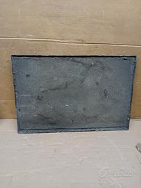 L insegna è una lastra in rame /bronzo cesellato rinforzata ( riempita ) dietro con impasto fibra cementizio o similare