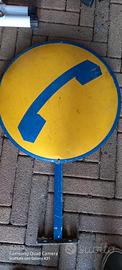 Insegna telefonica bifacciale SIP con asta . Presenta normali segni del tempo come da foto. Non spedisco. Prezzo leggermente trattabile.