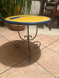 Insegna telefono pibblico anni 80 adibita a tabolino con gambe in ferro battuto ideale per ambienti interni ed esterni - modernariato