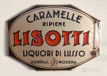 Insegna ottagonale pubblicitaria in metallo sagomato e plastificato Caramelle ripiene Lisotti Liquori di Lusso.