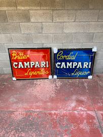 Insegne originali Bitter Campari Cordial Campari in vetro anno 1930 misura 80x90 cm incorniciate