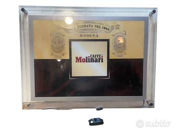 2) Si tratta di un'insegna luminosa in plexiglass rettangolare di Caffè Molinari in ottime condizioni