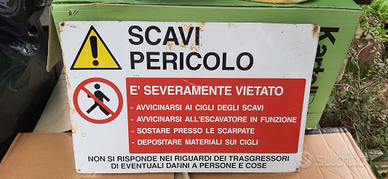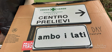 Vendo in blocco o singolarmente alcune insegne datate - 1) DISPONIBILE : vecchia insegna rettangolare bianca laccata con scritta, " centro prelievi" e' in alluminio pesante. Stato di conservazione e' molto buono - Misure : lu52xh26 - ( EUR25) 2) DISPONIBILE : vecchia targa vissuta in alluminio di colore giallo con scritta bianca " pericolo di morte " - misure : 22x16 - ( EUR30) 3) DISPONIBILE : vecchia insegna rotonda bianca/rossa "lavori in corso" ( EUR10) 4)DISPONIBILE : vecchia insegna rotonda rossa/blu " divieto di transito e di sosta " ( EUR10) 5) DISPONIBILE : vecchia insegna rettangolare bianca " ambo i lati " ( EUR30) 6)DISPONIBILE : vecchia insegna rettangolare bianca/rossa " scavi pericolo...) - ( EUR15 ) Disponibili foto specifiche - Ritiro su Lucca ( spedisco ) - POST VISIBILE SU ALTRI CANALI -