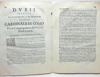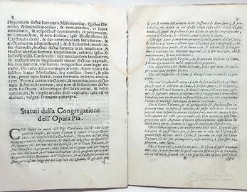 Interessante e raro documento storico relativo alla istituzione dei luoghi pii nell'ambito comense.