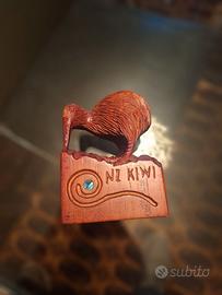 Souvenir in legno a tema Nuova Zelanda, raffigurante un uccello Kiwi. Dimensioni in cm circa 7,5 x 5,5 x 11,5