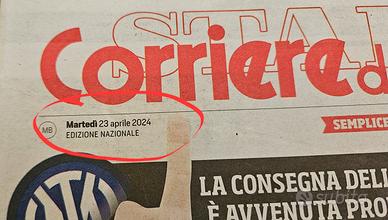 Corriere dello sport, tutte e tre del 23/04/2024 per celebrare il 20°scudetto dell' inter, la 2°Stella vinta nell anno 2023/2024 al derby di ritorno. Tutte e tre complete di tutte le pagine e integre in ogni sua parte. Tenute benissimo.