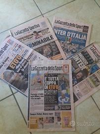 copie corriere e gazzetta del fantastico ed unico triplete della storia del calcio italiano, ogni copia 10 euro,