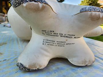Gonfiabile Invernizzi riproduce il gatto geo, testimonial dei Carosello Invernizzi del 1967. Il gattino riporta sul retro della testa la scritta "INVERNIZZI / milione / Geo". Sotto sulla pancia sono presenti le scritte "GEO E GEA / LI AVRETE SOLO CON LE FIGURINE / DEL FORMAGGINO "INVERNIZZI MILIONE" / N. 311 originale perfettamente funzionante ho lasciato di proposito la patina di sporco segno del tempo,lascio a chi lo acquista la responsabilità della pulizia con prodotti adeguati.INTROVABILE