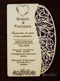 Questi inviti in legno intagliati a laser sono il risultato di un percorso fatto di ascolto, studio e prove.