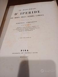 In vendita importante volume di interesse filologico e archeologico: "Il Discorso d'Iperide pei morti nella Guerra Lamiaca", curato dal celebre filologo Domenico Comparetti, pubblicato a Pisa nel 1864 (Tipografia dei Fratelli Nistri).