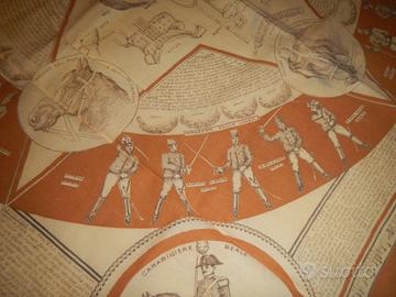 Questo è un fazzoletto didattico vittoriano della Cavalleria dell'Esercito Italiano, noto per le sue illustrazioni dettagliate di cavalli e istruzioni. Foulard stampato monocromo .Italia, XX secolo.