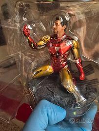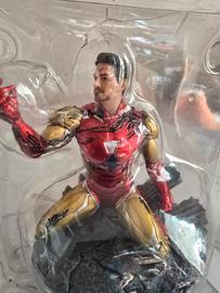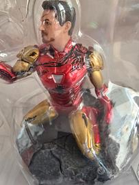 Statuina di Iron Man con la sua base rocciosa. Con dettagli accurati in resina nella battaglia finale Marvel Avengers Endagame inginocchiato schioccando le dita con la sua armatura rossa e dorata perfetta per i fan collezionisti e appassionati per il grande Iron Man.