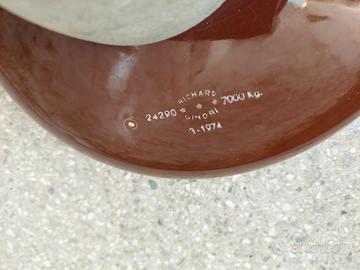 Isolatore elettrico alta tensione 24290 volt, kg. 7,000, 1974 in ceramica Richard Ginori, diametro cm. 25, vintage.