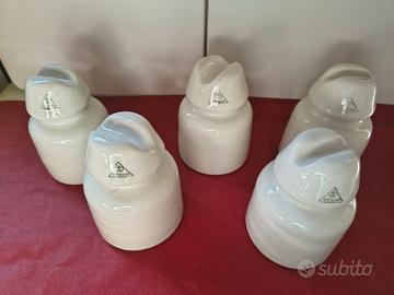Isolatori elettrici vintage in ceramica di cui: 6 Richard Ginori, 30e l'uno, se presi tutti e 6, 150e + 5 Verbano, 25e l'uno, se presi tutti e 5, 100e + 2 anonimi, 20e l'uno. se preso tutto il blocco, 250e.