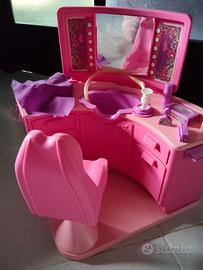 Istituto di bellezza di Barbie anni 80. Ben tenuto con scatola e accessori. Lo specchio ha uno dei tre attacchi rotto, ma come si vede sta cmq agganciato senza problemi.