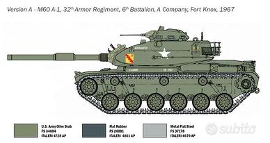 ✅ ITALERI 7075 - Scala 1 : 72 M60A1 Carri armati Stati Uniti Periodo Moderno.