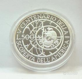 ITALIA 1990 - ARGENTO 500 LIRE - SCOPERTA AMERICA