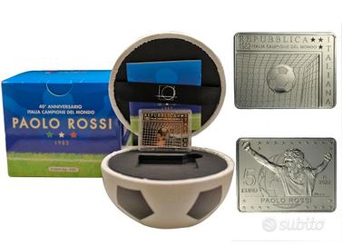 Come da Foto Vendo Pari al Nuovo la seguente Moneta da Collezione:ITALIA 2022 5 EURO 40°ANNIVERSARIO MONDIALI DI SPAGNA 1982 IN ARGENTO 925 FDC UFFICIALE I.P.Z.S. IN COFANETTO CERTIFICATA E A TIRATURA LIMITATA. METALLO: Argento 925‰CONTINGENTE: 6.000TIPOLOGIA: Monete Italia EuroAUTORE: VECCHIO, AntonioANNO DI EMISSIONE: 2022DATA DISPONIBILITA: '6 lug 2022VALORE NOMINALE: 5,00 €BORDO: LISCIOFINITURA: Fior di conioDIAMETRO (mm)35 x 26,3 mmPESO (gr)18CONFEZIONAMENTO: Confezione a forma di PALLONE da CALCIO.