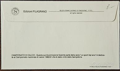 ITALIA FDC Filagrano GOLD - Campionato italiano di calcio 1990-1991 SAMPDORIA campione d'Italia.